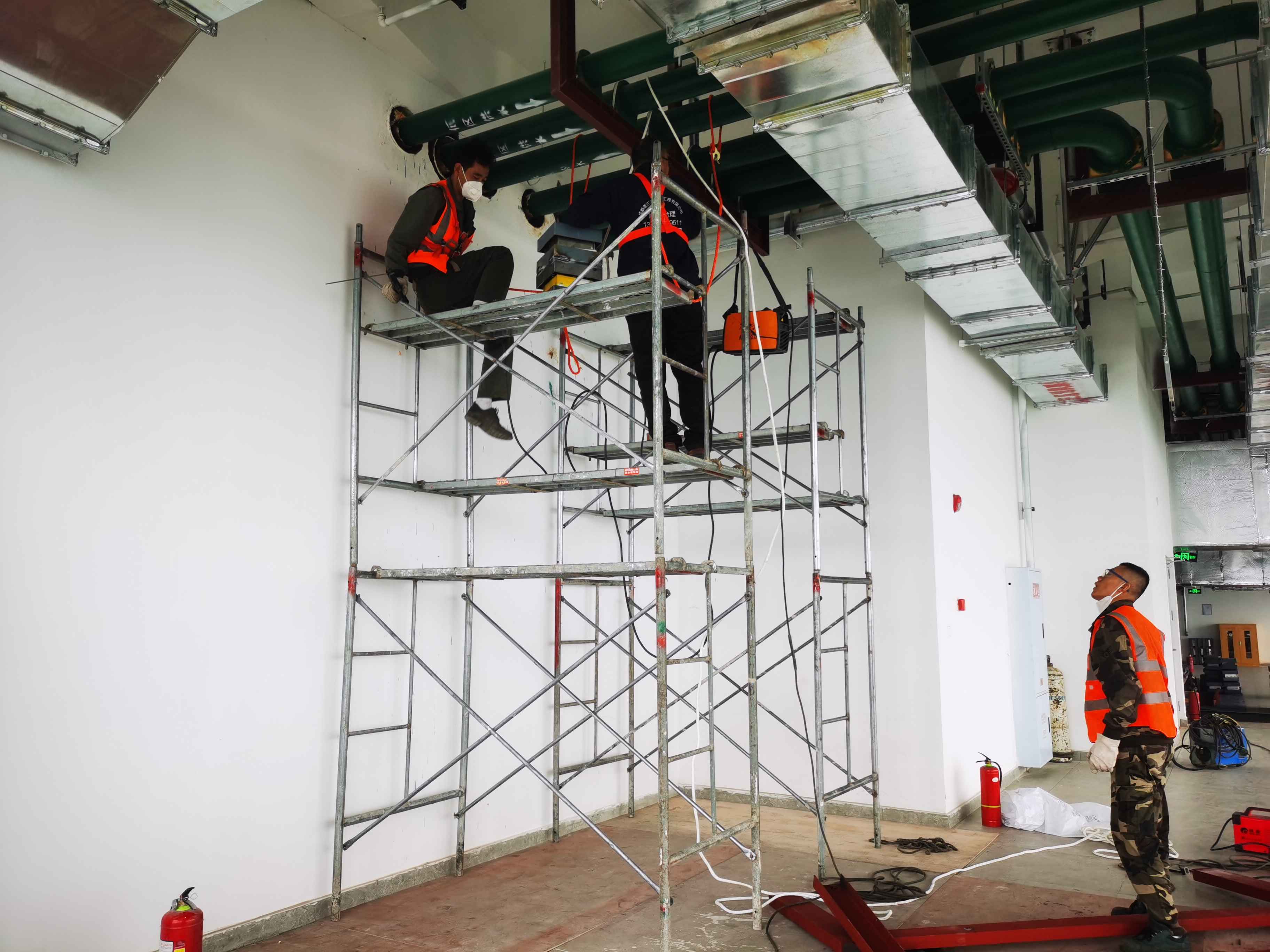 3、在水泵主機原有底梁與墻體連接部分,采用等離子切割方式,使其不與墻體和地面連接。